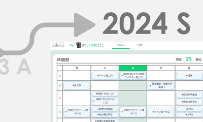 ut.code(); は、シ楽バスを2024年度Sセメスターに対応するアップデートを行いました。 シ楽バスは東京大学前期課程に特化した時間割サービスです。所属...